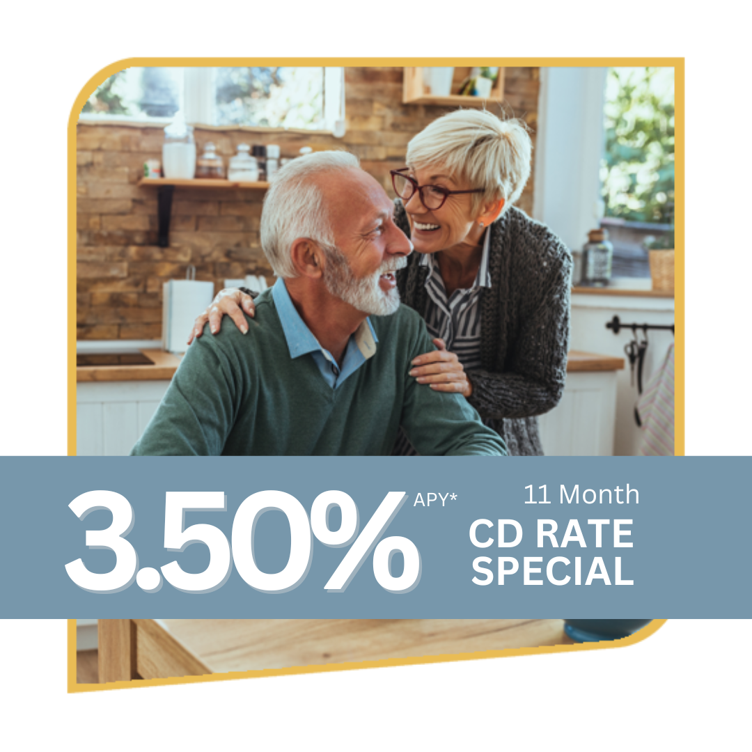 **11 MONTH CD RATE SPECIAL -Annual Percentage Yield of 3.50% (APY) for the 11 Month Special. Accurate as of October 21, 2025, and subject to change. Minimum balance of $500 required to open. At maturity, the CD will automatically convert to a 12 month regular CD at the current rate at that time. Penalty for early withdrawal which may reduce earnings.