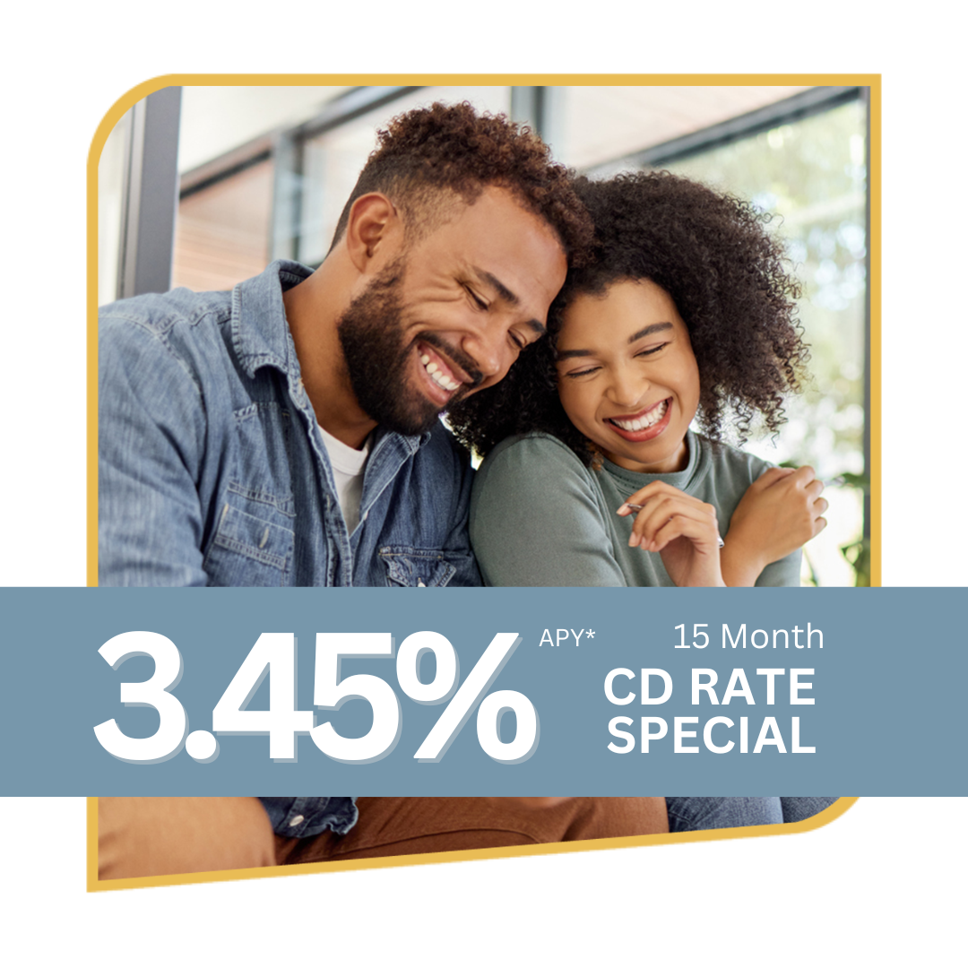 ***15 MONTH CD RATE SPECIAL – Annual Percentage Yield of 3.45% (APY) for the 15 Month Special. Accurate as of October 21, 2025, and subject to change. Minimum balance of $500 required to open. At maturity, the CD will automatically convert to a 12 month regular CD at the current rate at that time. Penalty for early withdrawal which may reduce earnings.