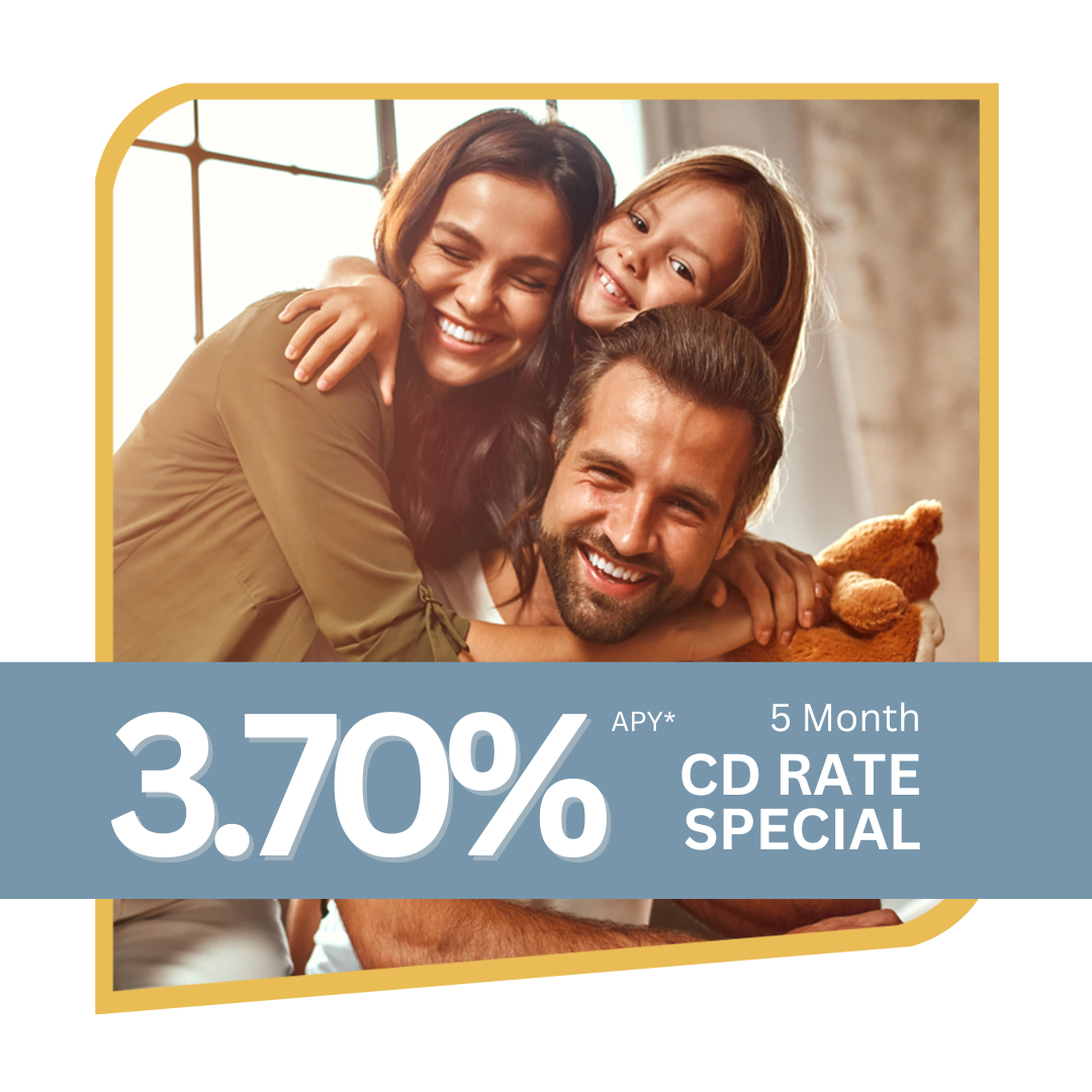 *5 MONTH CD RATE SPECIAL -Annual Percentage Yield of 3.70% (APY) for the 5 Month Special. Accurate as of October 21, 2025, and subject to change. Minimum balance of $500 required to open. At maturity, the CD will automatically convert to a 12 month regular CD at the current rate at that time. Penalty for early withdrawal which may reduce earnings.
